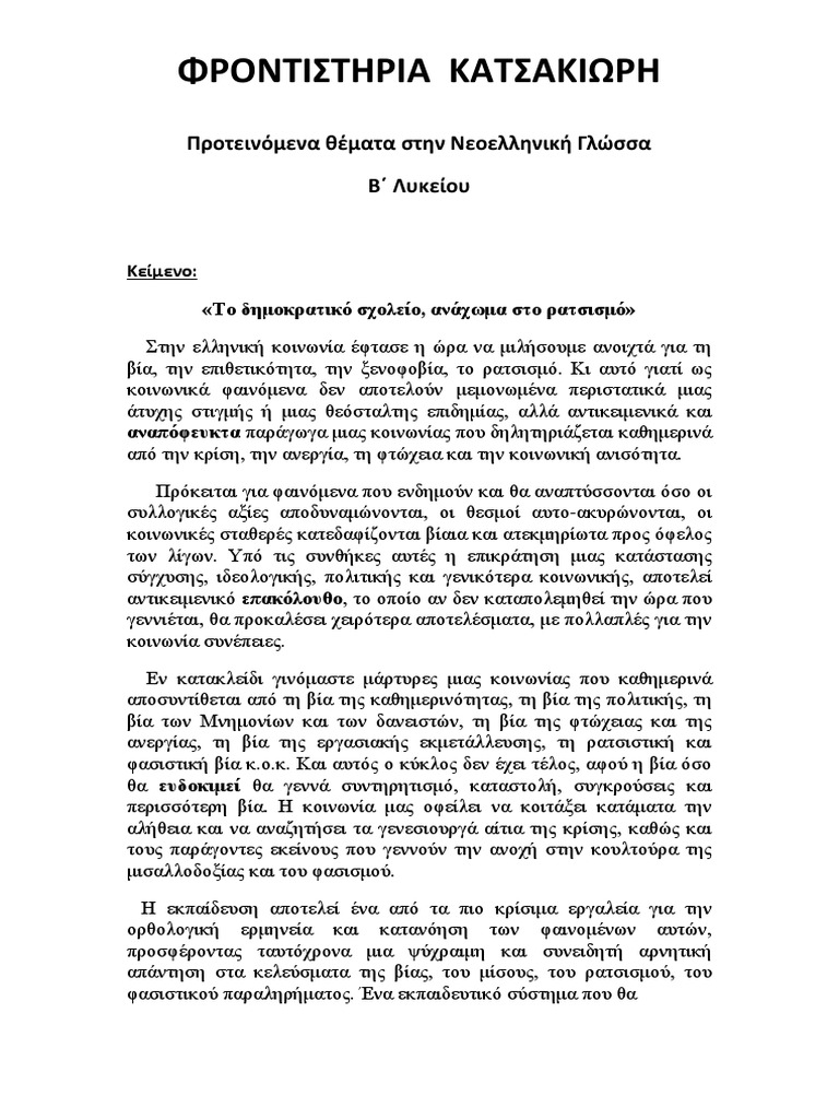 Mia Ma8htikh Ek8esh Gia To Ratsismo from famagusta.news Όσα πρεπει να γνωρίζετε για τον περιορισμό των μετακινήσεων. Συχνές ερωτήσεις για τον ιδιωτικό τομέα. Εζησε για να την περιγραψει. Δεν έχεις πολύ χρόνο να αφιερώσεις σε μία δουλειά; Λύσεις βιβλίου & τετραδίου εργασιών» σχεδιάστηκε με τέτοιο τρόπο, ώστε να είναι εύχρηστο στον οι μαθητές θα πρέπει να προσπαθούν μόνοι τους να απαντήσουν τις ασκήσεις/ερωτήσεις του σχολικού βιβλίου καί να συμβουλέυονται το λυσάρι για. Η έκθεση δεν είναι ένα ασυνεχές και αδιαίρετο κείμενο, δεν αποτελείται από απλή, μηχανική παράθεση δεδομένων ή ιδεών. Ποιοι δεν είναι δικαιούχοι για τον κοινωνικό τουρισμό οαeδ και ποια δικαιολογητικά αναζητούνται αυτεπαγγέλτως. O στιβ νας που έχει ιδιαίτερη σχέση με τον κρίστιαν έρικσεν από τα χρόνια που ο ηγέτης της δανίας αγωνιζόταν στην τότεναμ, του έστειλε την αγάπη και.